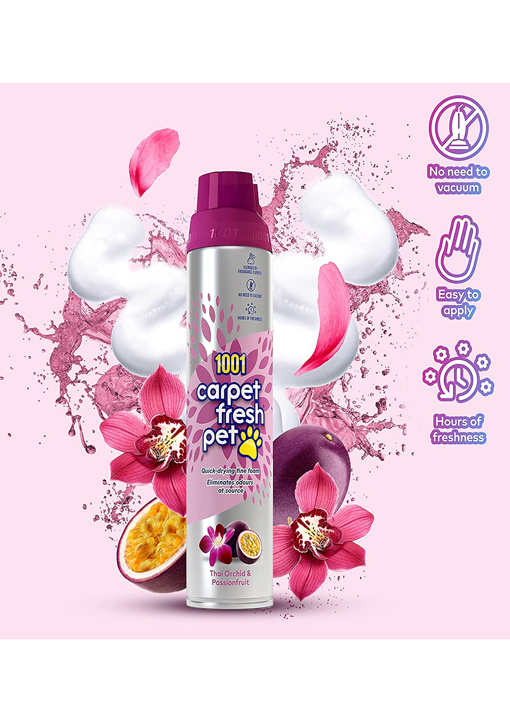 1001 Carpet Fresh Pet safely eliminates all types of pet smells, without the need to vacuum. Blended by fragrance experts, this carpet odour remover leaves your home smelling fresh and clean.