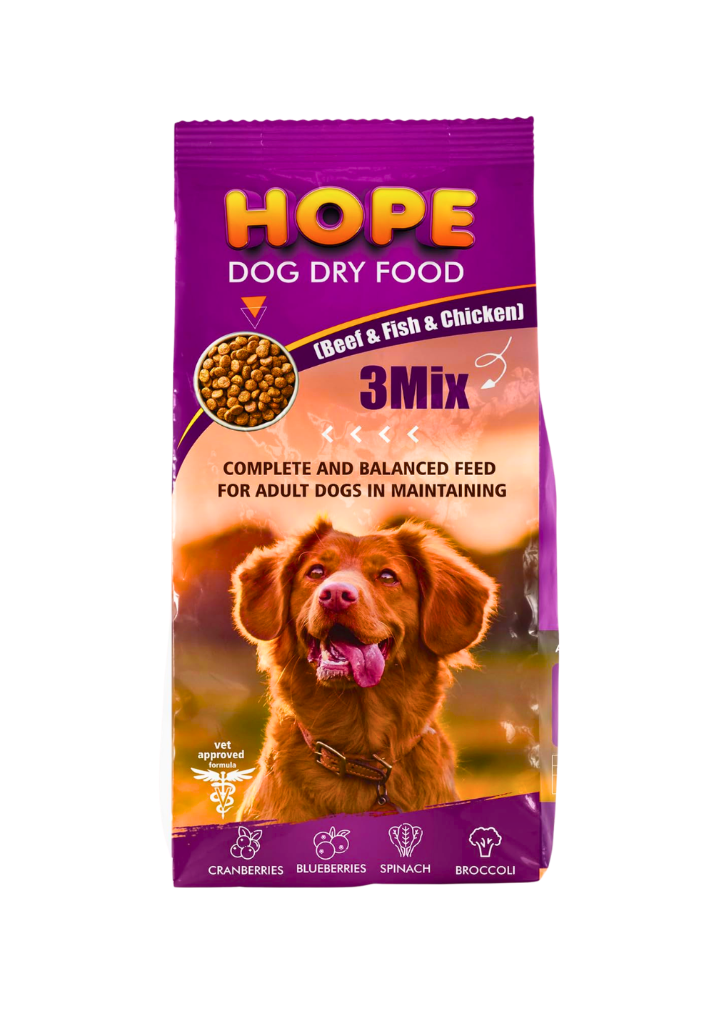 Hope Adult Dog Dry Food, 3Mix with Beef, Fish & Chicken, 18 kg