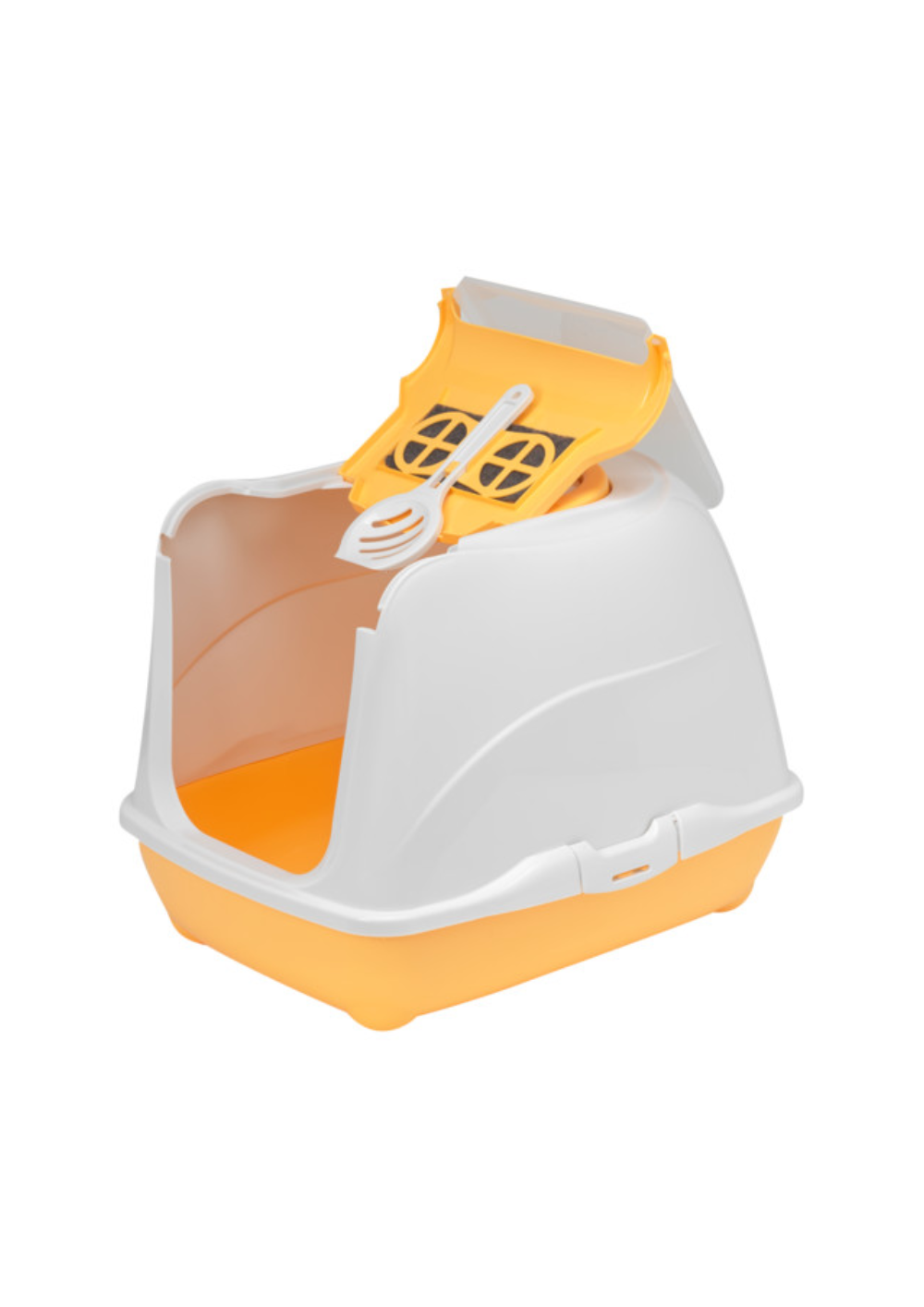 Cleaning has never been easier! In the tray, there is a hideaway spot for the scoop in the ceiling. The Flip Cat features two clever clip-locks that keep the box secure. The integrated handle makes it convenient to move the box around. Plus, the Flip Cat is very easy to clean with just some warm soapy water.