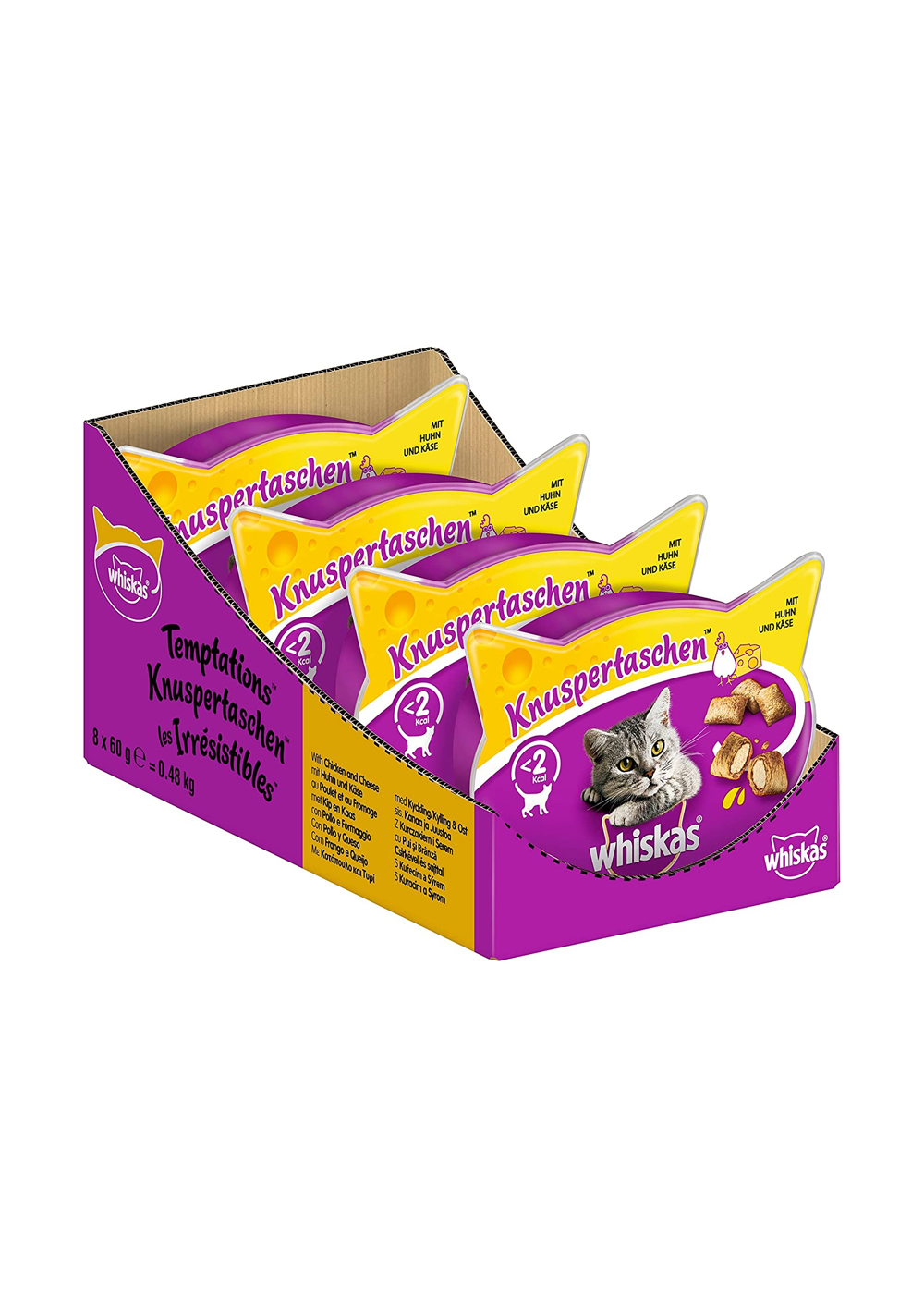 WHISKAS® TEMPTATIONS™ are delicious dual-textured cat treats containing a scrumptiously soft, creamy centre with less than 2 kcal in every treat. Purrrr!