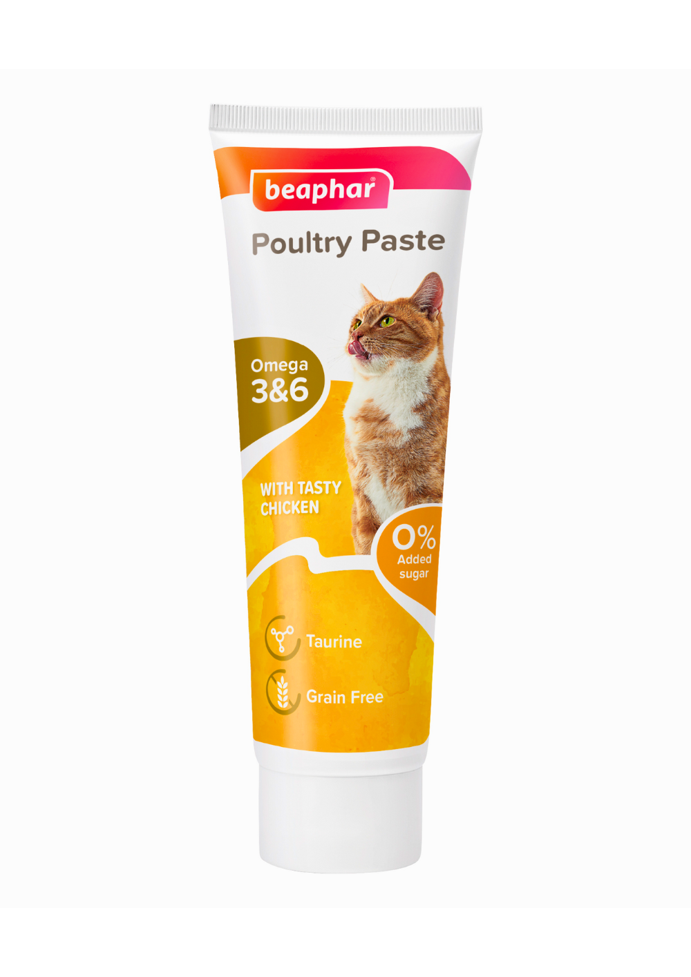 Beaphar Poultry Paste is a special snack to give as a daily treat. The high amount of chicken makes the paste irresistibly delicious.