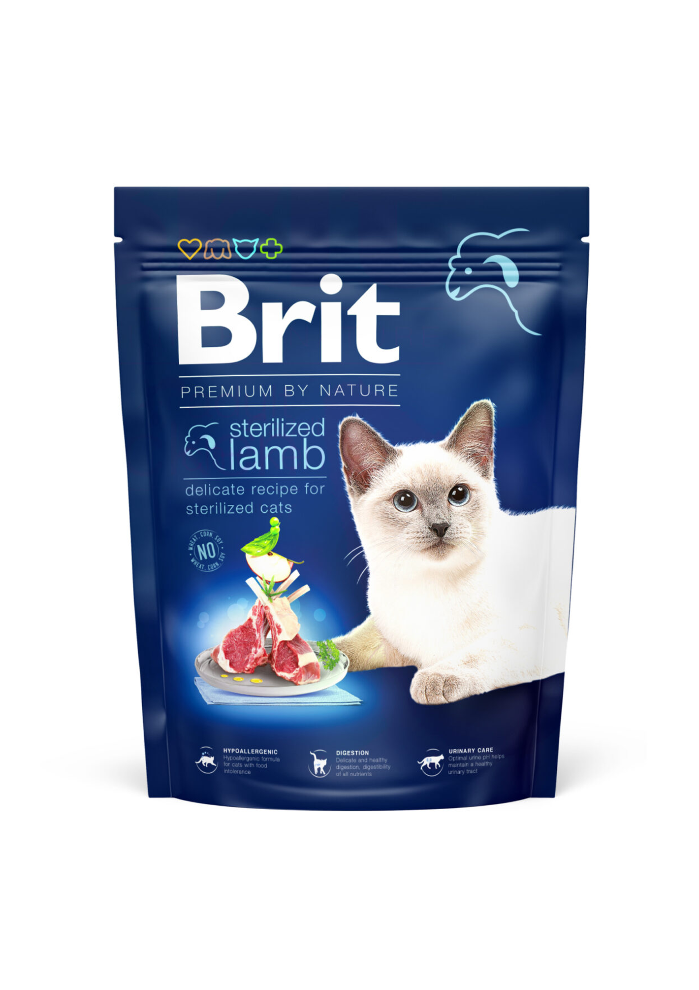 Brit Premium Sterilized Lamb is a premium hypoallergenic complete food made from natural ingredients with lamb for sterilized cats with sensitive digestion.