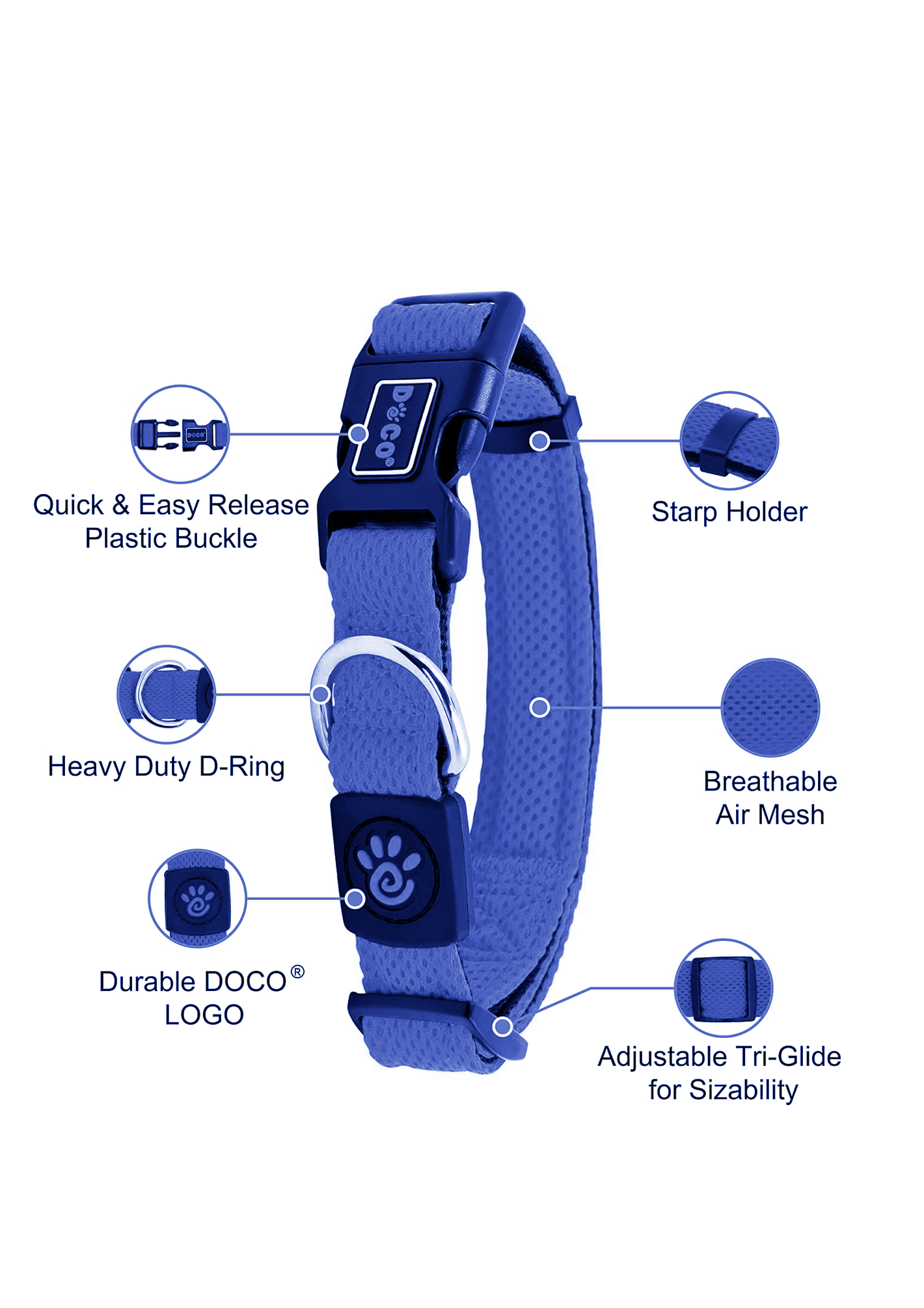 Doco Puffy Mesh Collar DCA102 Color Blue Size S