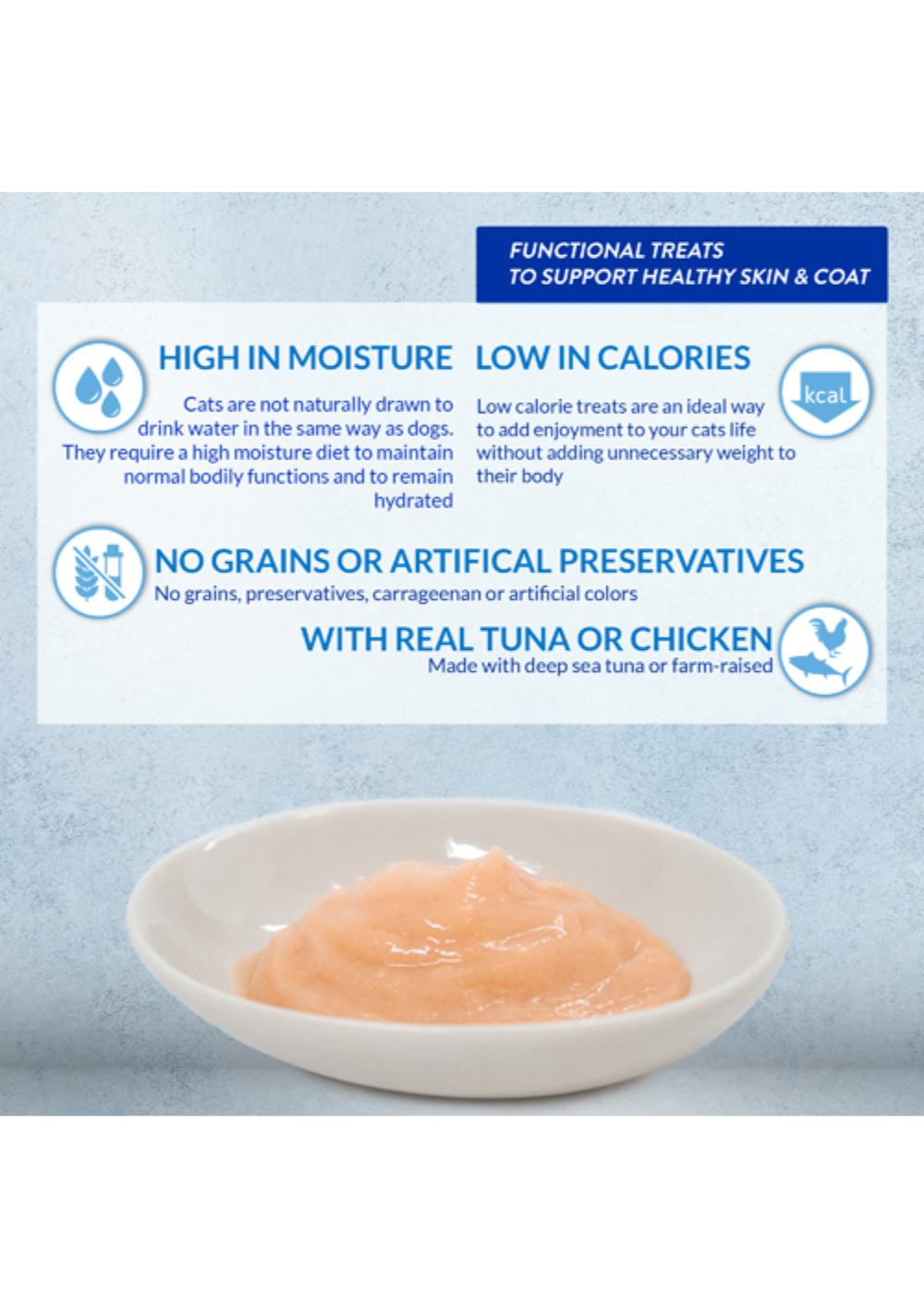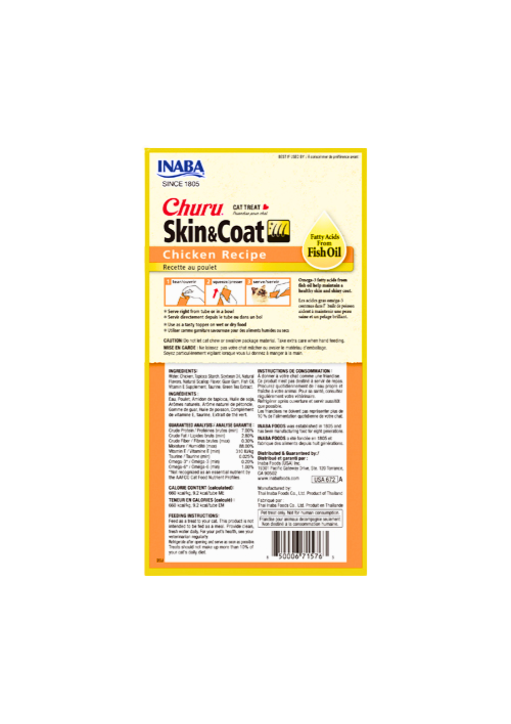 - FUN AND FUNCTIONAL: Like our original Inaba Churu Cat Treats, these tubes are a low-calorie treat that helps with hydration. But we’ve also packed them with Omega-3 fatty acids from fish oil to help maintain healthy skin and a shiny coat