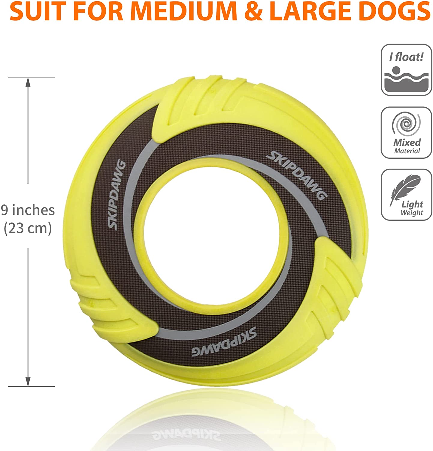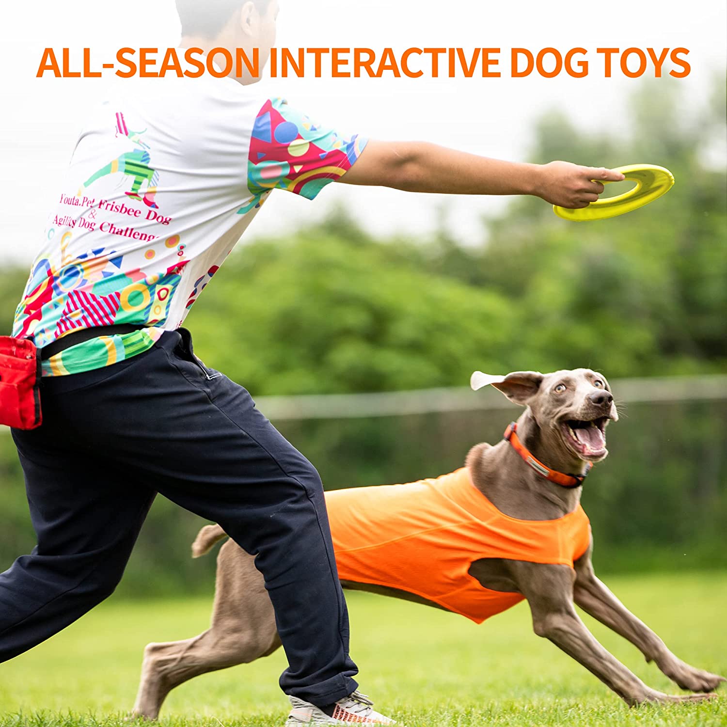 - FLOAT IN THE WATER: Soft lightweight material dog flyer, buoyant designed for long-distance flight and floats in water. The interactive dog toys are great for playing at the pool or lake. A great alternative to dog balls or tennis balls for dogs.